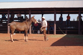 Os cavalos são manejados ao cabresto diariamente, promovendo boas maneiras durante o trajeto do pasto até a cocheira, além da escovação e limpeza dos cascos. Isso garante o bem-estar dos animais e facilita o manejo diário.